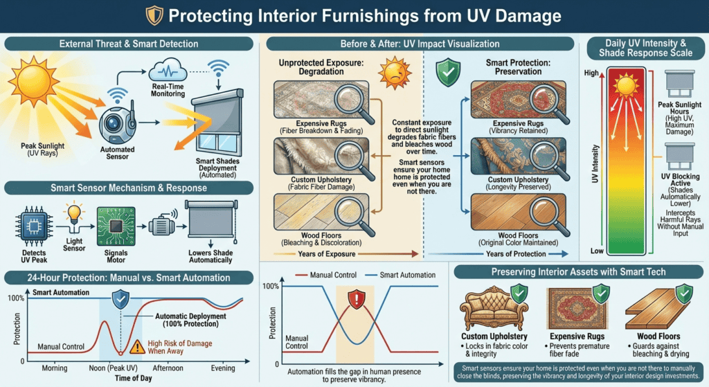 - UV Protection: Automatically safeguard furniture and floors from sun damage.